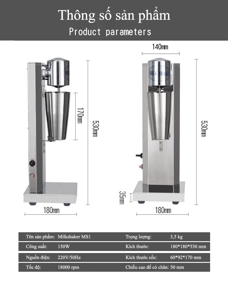 Máy đánh sữa Milkshake được sản xuất bởi công ty Milate chuyên các dòng sản phẩm điện tử gia dụng và các sản phẩm sử dụng trong lĩnh vực pha chế đồ uống. Máy khuấy trà sữa Milate MS-1 được sản xuất để khuấy trà sữa, làm trà lắc, làm kem trứng hoặc làm các sản phẩm tuyết xay thay cho công đoạn shake lắc thông thường.