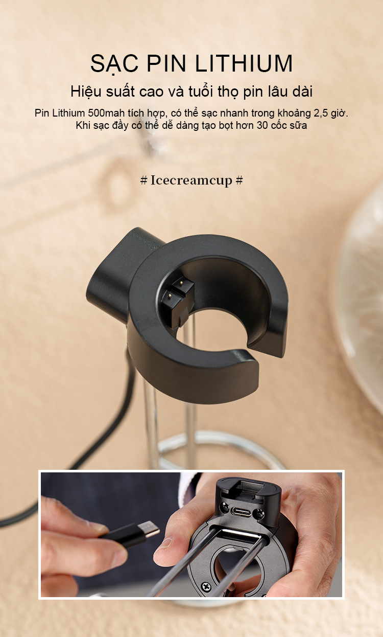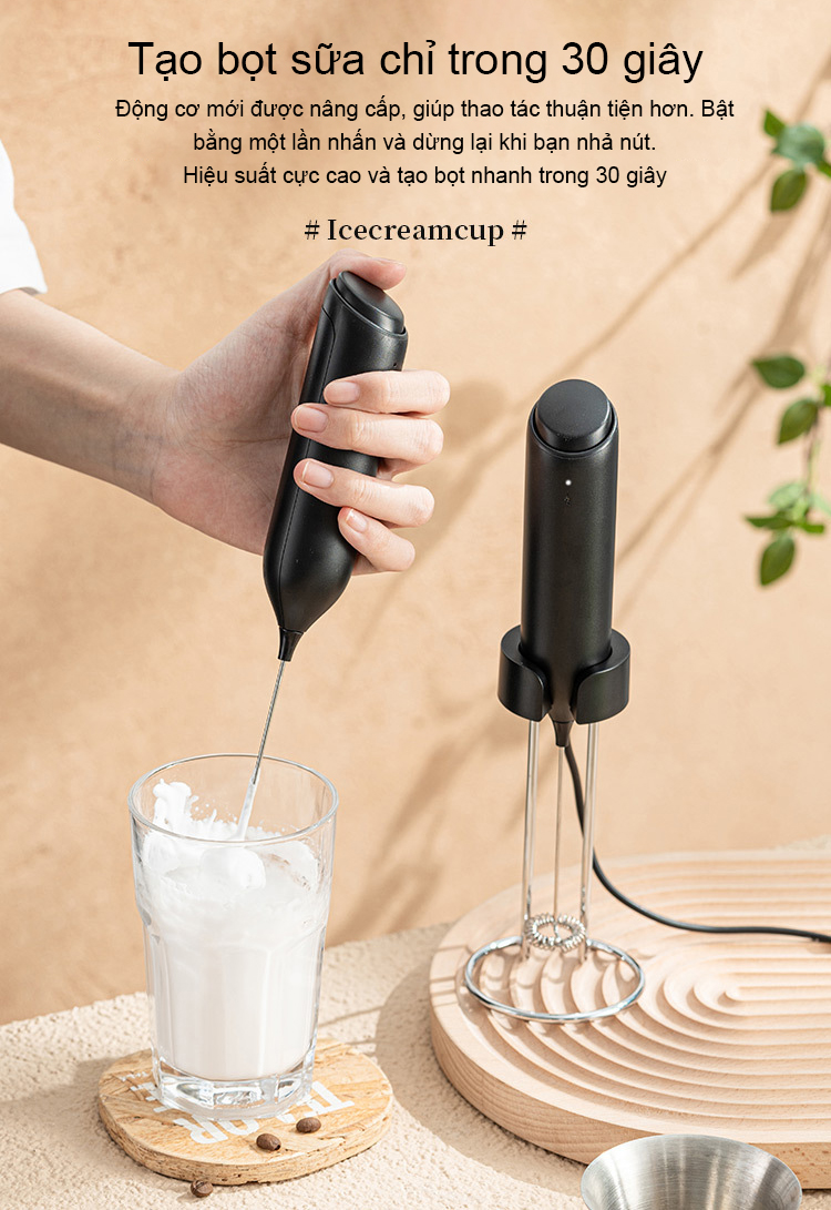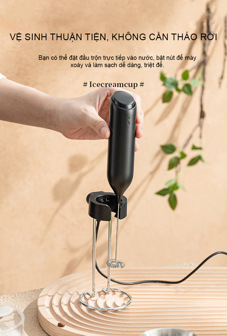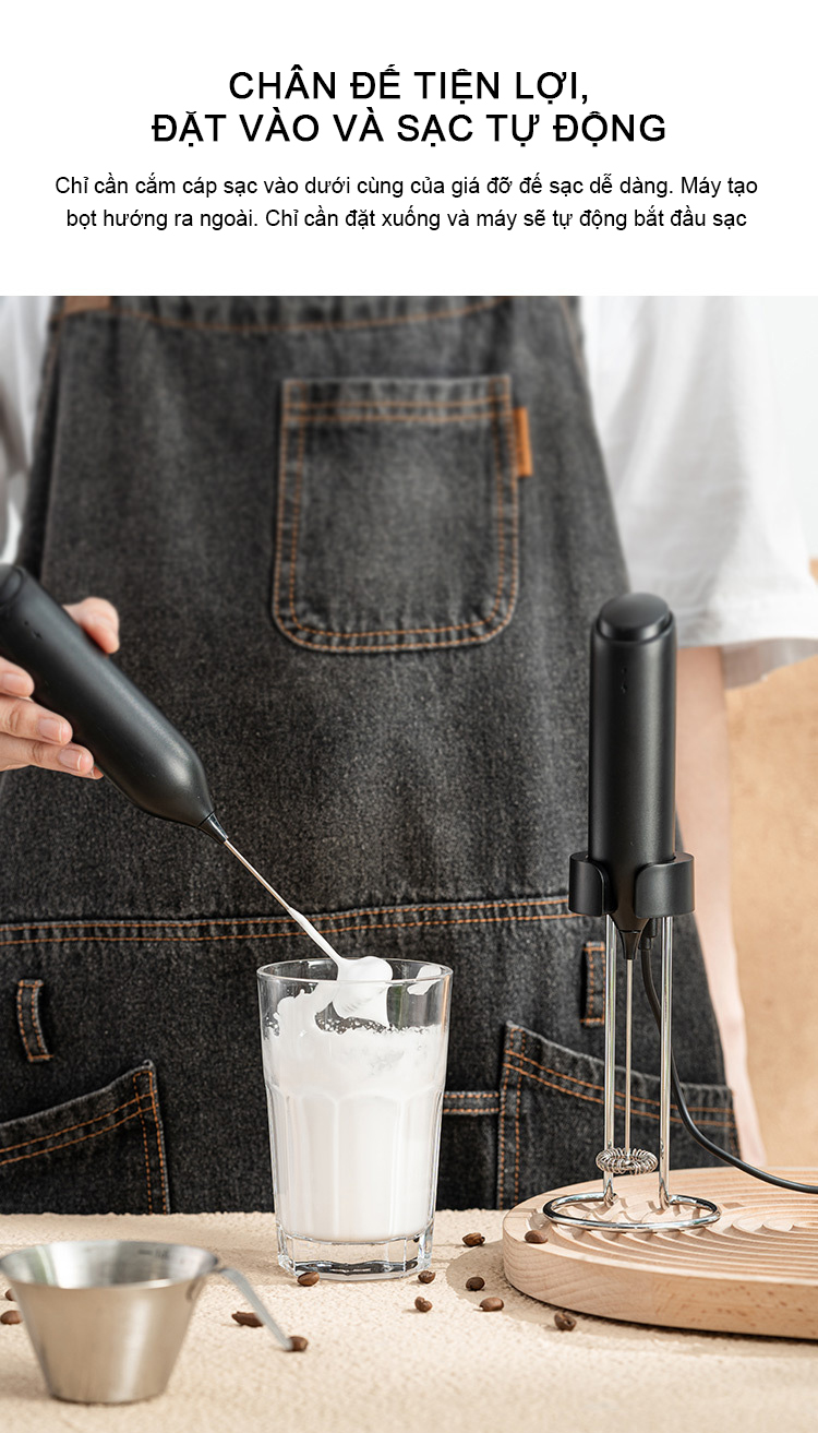 Dễ dàng tạo bọt sữa chỉ với một thao tác nhấn nút. Thiết kế sạc không dây hiện đại, thuận tiện khi sử dụng.
