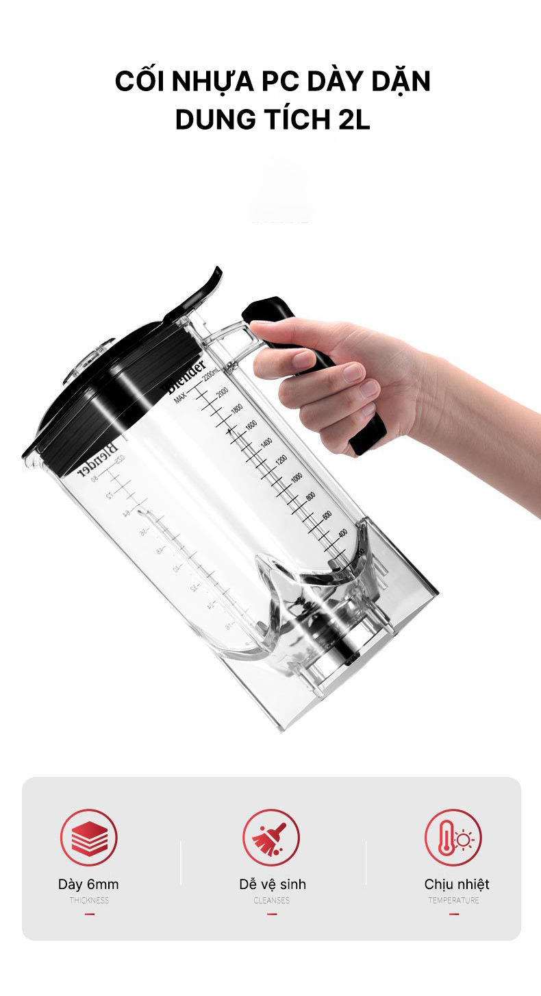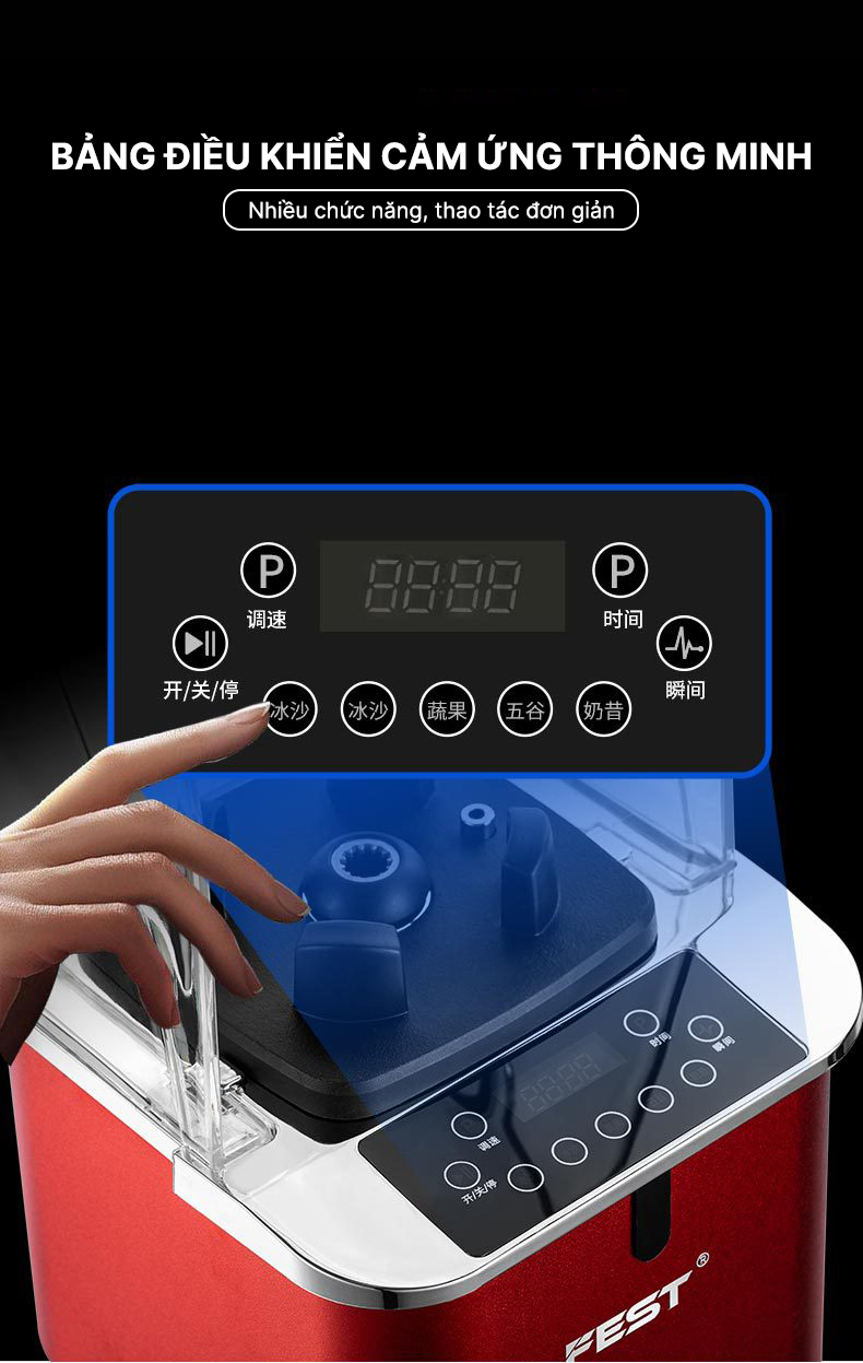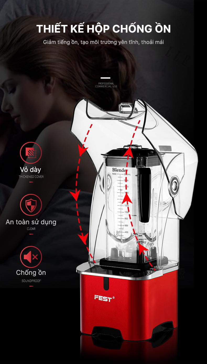 Máy xay sinh tố FEST K15E 2200W màu đỏ tinh tế, thiết kế sang trọng, phù hợp với không gian căn bếp hiện đại. Máy được làm từ những chất liệu an toàn, không gây hại (inox cao cấp, nhựa siêu bền, thủy tinh trong suốt), giúp bạn hoàn toàn yên tâm khi sử dụng. Kết cấu 2 lớp bảo vệ giúp giảm tiếng ồn cũng như an toàn cực cao cho người sử dụng.