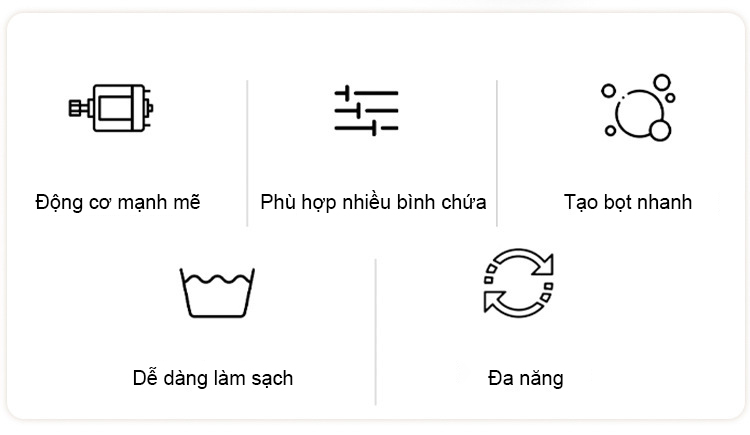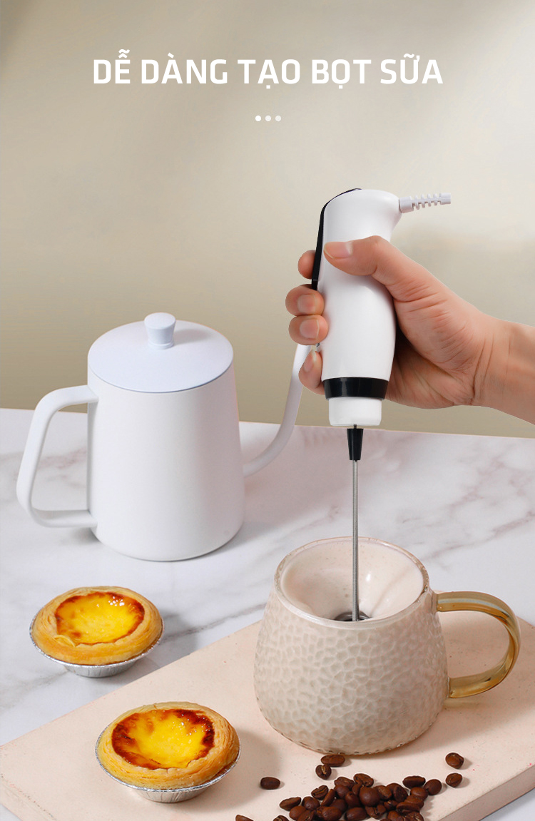 Máy Tạo Bọt Cafe, Đánh Bọt Sữa Cao Cấp Home 25W Dùng Điện 220V Dùng để tạo bọt cà phê, tạo bọt sữa, tạo bọt lòng đỏ trứng, (không dùng cho lòng trắng ) Khuấy thực phẩm hoà tan... Chạy điện 220v, công suất 25w Thân máy làm từ nhựa ABS, que khuấy làm từ inox 304 an toàn thực phẩm. Kích thước nhỏ gọn cầm tay, chi tiết như ảnh mô tả Phù hợp cá nhân, gia đình, quán cà phê trà sữa đồ uống nhỏ